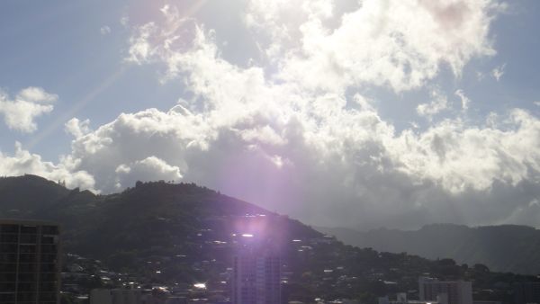 朝8時頃マキキ地区から見た、ダイヤモンドヘッド、ワイキキ方面の空模様です![]()