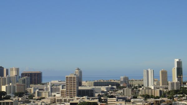 朝8時頃マキキ地区から見た、ダイヤモンドヘッド、ワイキキ方面の空模様です![]()