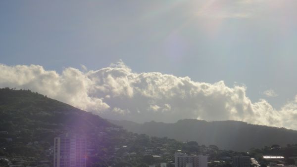 朝8時頃マキキ地区から見た、ダイヤモンドヘッド、ワイキキ方面の空模様です![]()